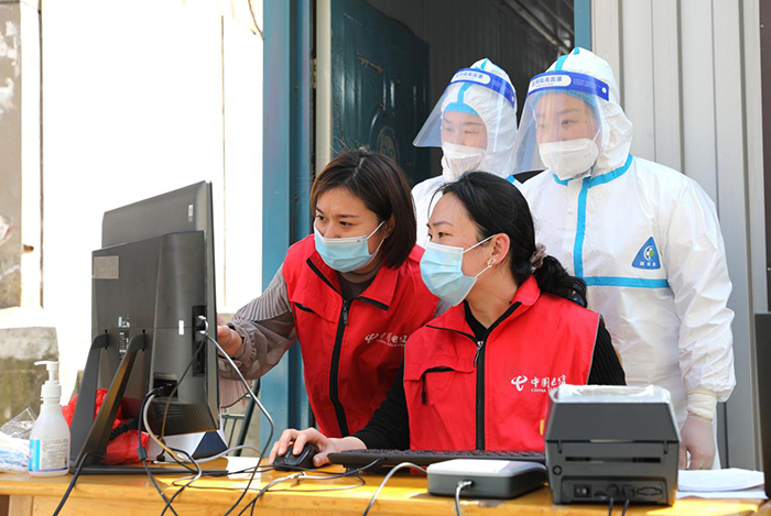 技术支撑添助力。自全员核酸检测启动以来,安庆市各区均面临巨大检测压力,为帮助一线人员提高检测效率、强化检测精度、降低检测压力,安庆移动、电信、联通等运营商和有关网络技术保障企业组织一千余名党团员,深入迎江区、宜秀区、大观区、经开区、高新区等区域,为核酸检测人员当解决网络问题的技术员和平台使用的培训师。网络运营企业和安徽峰速网络智能、安徽盛世航明科技等公司的专业技术人员短短两天时间内,从城西跨到城北,为全市黄金时间内全员核酸的及时完成,提供了网络技术有力支撑。